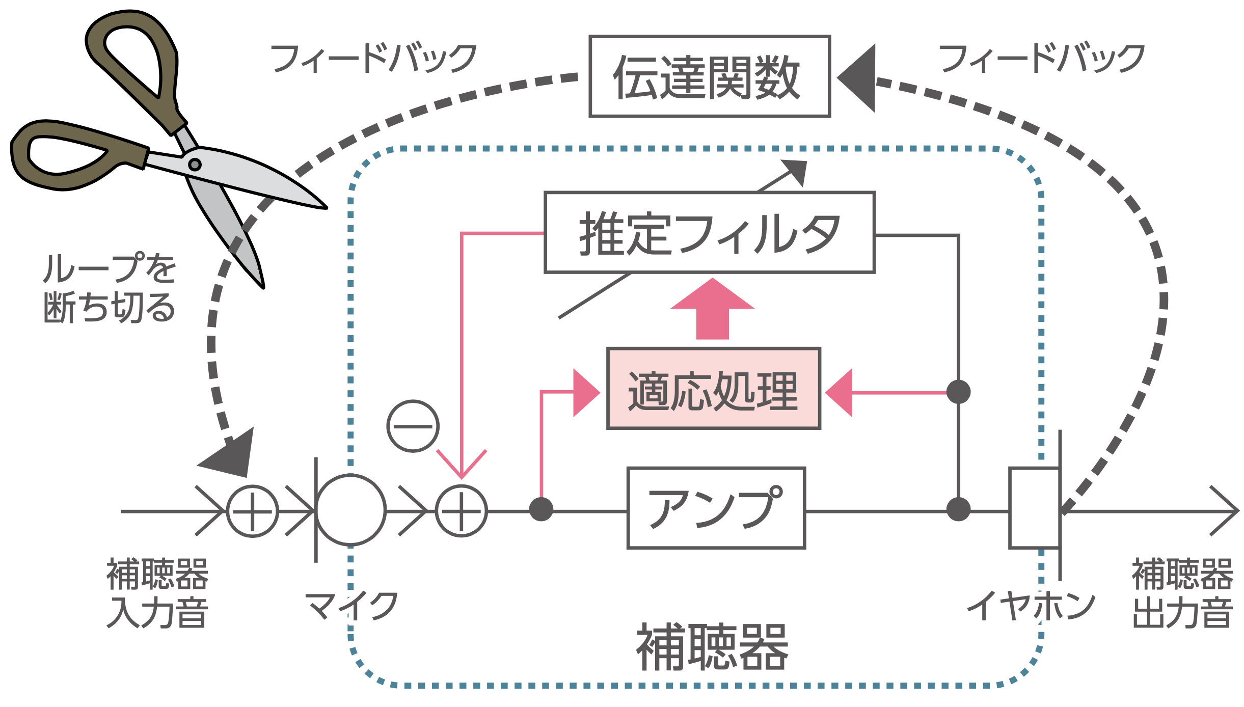 しかしそのような機能を使った場合は、聞こえてくる音が反響の強い、不自然な音になると、比較試聴(ハウリングキャンセラー機能 入・切での比較)をされた方々から伺います。その結果「音は聞こえるけれども、ことばとしてはっきり聞こえない」という結果を招く場合が多いように感じます。